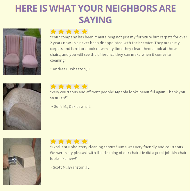 If you have any question about our upholstery cleaning service in Palatine, or need any information, call us at 847-350-7808. We also do cleaning of your outdoor furniture and upholstery. Carpets in vehicle are also our area of expertise.